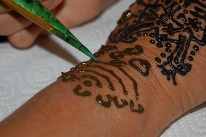 Zur Herstellung von Henna werden die getrockneten Blätter der Henna Pflanze zu pulver zermalen. 100% natürliches Hennapulver, Wasser und TeebaumÖl. Das sind die Zutaten der verwendeten Mehndi-Henna Paste. Rein pflanzlich, ohne Nebenwikrungen und ohne giftige Zusatzstoffe. Ihr Mehndi Kunstwerk ist nur temporär beständig. Die aufgemahlten Ornamente verblassen mit der Zeit und verschwinden nach 2-3 Wochen ohne Rückstände völlig.